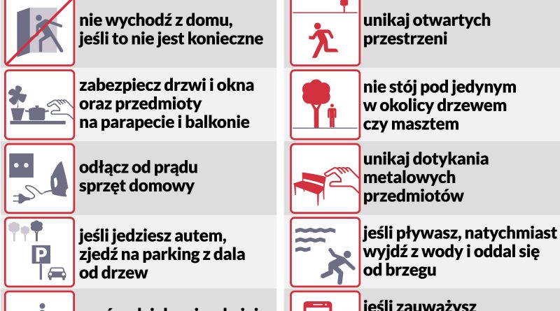 - należy usunąć z parapetów i podwórek wszystkie przedmioty, które mogą zostać porwane przez wiatr;