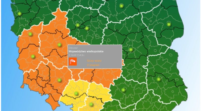 Instytut Meteorologii i Gospodarki Wodnej wydał ostrzeżenie drugiego stopnia dla województwa wielkopolskiego dotyczące możliwości wystąpienia silnego wiatru (skala od 0 do 3, gdzie 0 to brak ostrzeżeń, a 3 to najwyższy stopień ostrzeżeń).