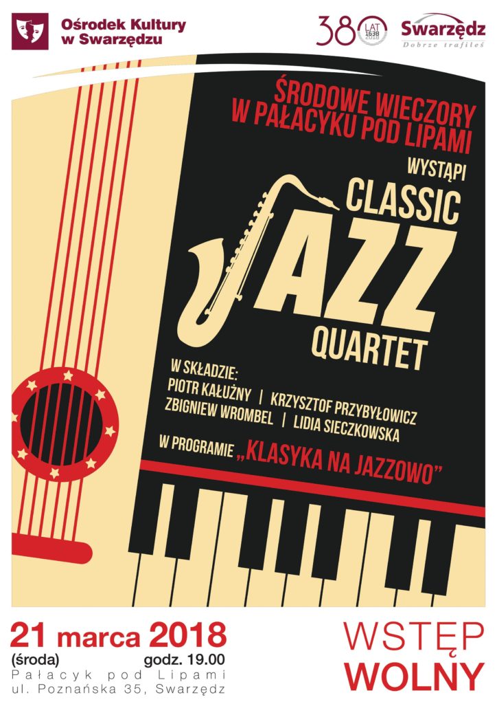 21 marca o godz. 19:00 przed swarzędzką publicznością wystąpi Classic Jazz Quartet, w składzie: Piotr Kałużny, Krzysztof Przybyłowicz, Zbigniew Wrombel i Lidia Sieczkowska.