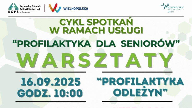 Warsztaty będą odbywać się w Centrum Wsparcia Seniora zlokalizowanym przy ulicy Piaski 4 w Swarzędzu, na I piętrze. Zaplanowano trzy tematyczne spotkania w drugiej połowie września. Pierwsze z nich, zatytułowane „Profilaktyka odleżyn”, odbędzie się 16 września o godzinie 10:00. Kolejne spotkanie, „Terapia śmiechem”, wyznaczono na 23 września, również o godzinie 10:00. Cykl wrześniowych warsztatów zamknie temat „Mój dom, moja twierdza czy mój wróg”, który zostanie poruszony 29 września o godzinie 10:00.