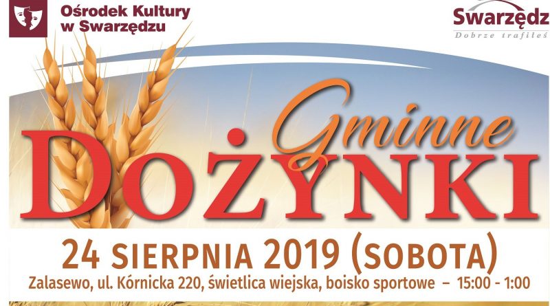 Tegoroczne Dożynki Gminne odbędą się w sobotę, 24 sierpnia przy świetlicy wiejskiej w Zalasewie. Uroczystości dożynkowe rozpoczną się o godz. 15:00 mszą św. na placu za świetlicą wiejską. Scena ustawiona będzie na boisku sportowym. Występy sceniczne poprzedzi korowód dożynkowy.