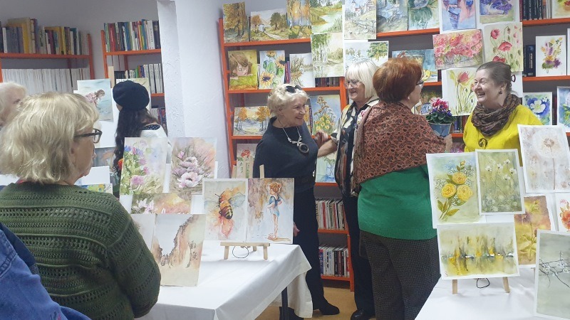 Co ciekawe, ich wspólna przygoda z akwarelą rozpoczęła się stosunkowo niedawno, bo w sierpniu 2024 roku, podczas kursu dla seniorów organizowanego w Centrum Usług Społecznych w Swarzędzu. Podczas wernisażu artystki skierowały szczególne podziękowania do swojej instruktorki, pani Kingi Jeziorskiej-Wieliczko. To jej zaangażowanie, a zwłaszcza, jak podkreśliły, konstruktywna krytyka, uwagi i spostrzeżenia, zaowocowały szybkim rozwojem techniki i umiejętności patrzenia na obraz pod kątem światła i koloru.