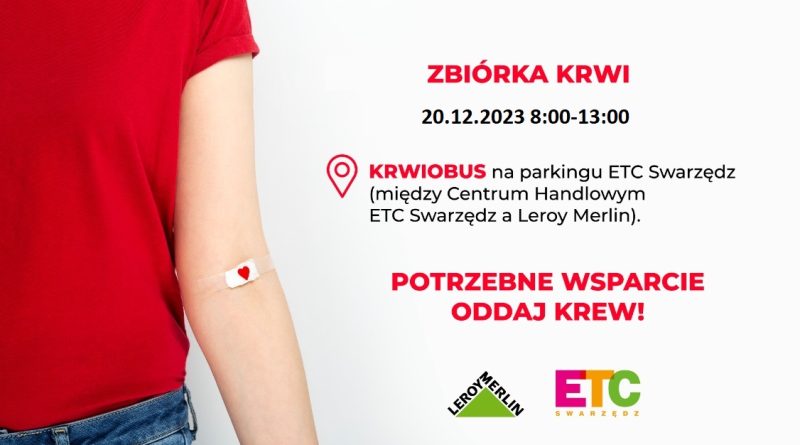 „Świąteczna ZBIÓRKA KRWI” organizowana jest przez Leroy Merlin i ETC Swarzędz we współpracy z Regionalnym Centrum Krwiodawstwa i Krwiolecznictwa z Poznania.