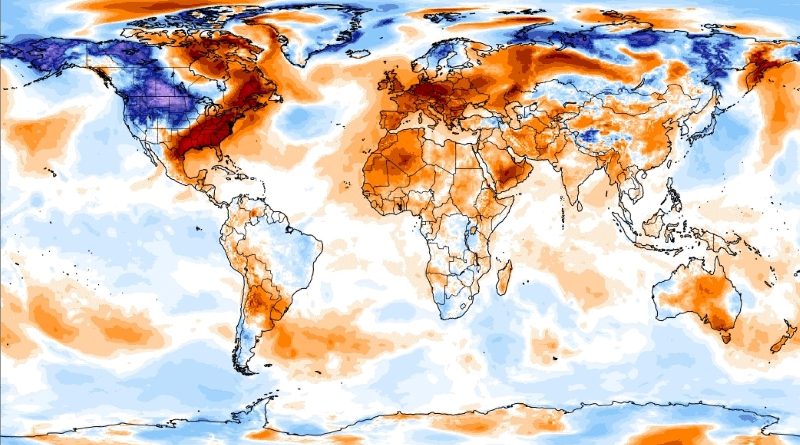 Jak można zauważyć na mapie, pokazującej odchylenie od normy temperatur na całym świecie, w pierwszym dniu Nowego Roku ciepłem mogą się cieszyć mieszkańcy niemal całej Europy z wyjątkiem Skandynawii. Bardzo ciepło jest także na wschodnim wybrzeżu USA i Kanady. Nad znaczną częścią Polski dodatnia anomalia przekracza średnią wieloletnią o ponad 10°C!