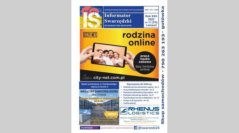 Spieszymy z informacją: najnowszy Informator Swarzędzki, numer listopadowy (11/2022) już się ukazał. Bezpłatny lokalny miesięcznik informacyjno-ogłoszeniowy, jak zawsze jest wydawany w formie papierowej oraz internetowej. Tradycyjne wydanie można znaleźć w punktach handlowych i usługowych na terenie gminy Swarzędz i w wybranych punktach gmin sąsiednich. W formie elektronicznej – na naszym portalu. Oczywiście bezpłatnie! Zapraszamy do lektury IS!