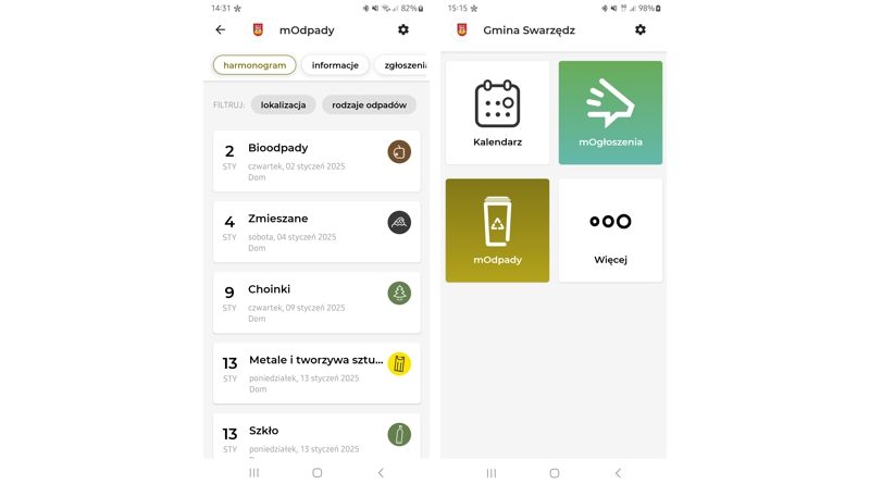 Urząd Miasta i Gminy w Swarzędzu poinformował, że uruchomiona została nowa miejska apka, której jedną z funkcjonalności jest możliwość sprawdzenia harmonogramu odbioru odpadów.