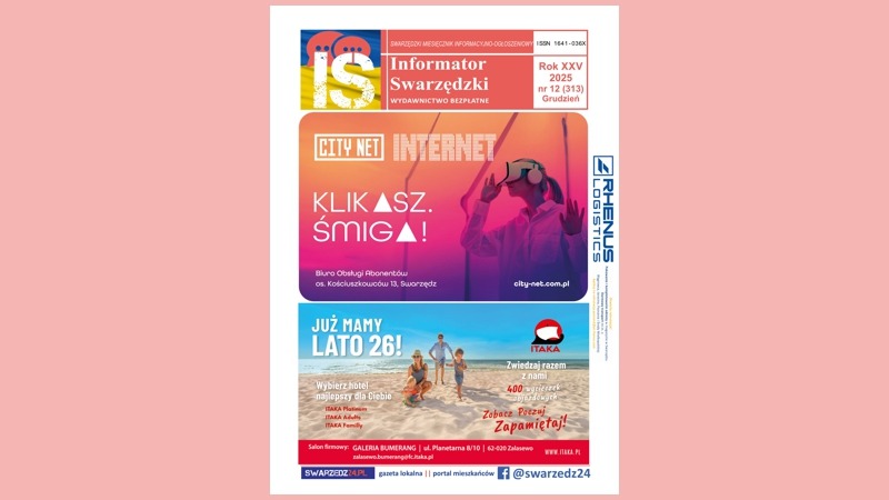 Wraz z początkiem grudnia ukazało się nowe wydanie naszego miesięcznika Informator Swarzędzki. Numer 12 (313)/2025 już od czwartku można znaleźć w punktach handlowych i usługowych na terenie miasta i gminy Swarzędz, a także w wybranych miejscach w gminach sąsiednich – Pobiedziska, Kostrzyn i Kleszczewo. Jak od zawsze – bezpłatnie – na papierze i w internecie.