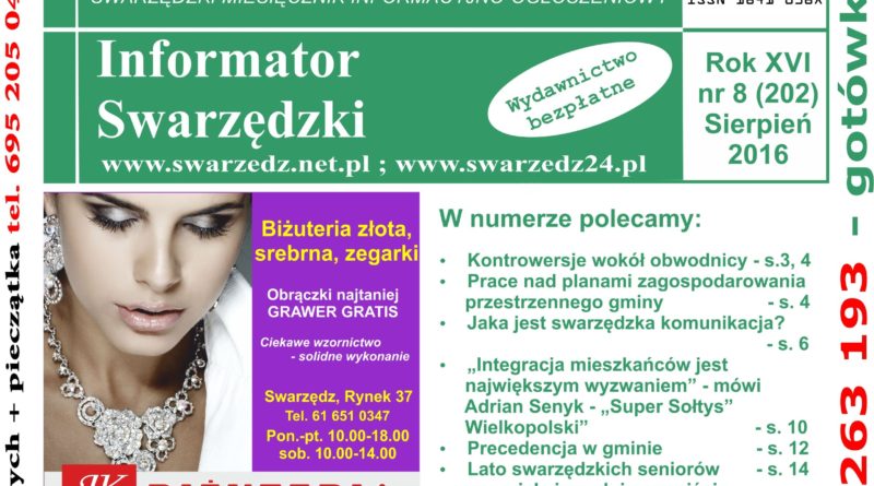 Z przyjemnością informujemy, że na naszej stronie internetowej można już przeczytać sierpniowy numer „Informatora Swarzędzkiego”. Wersja papierowa „Informatora” dostarczona będzie do punktów handlowych w dniach 1-2 sierpnia.