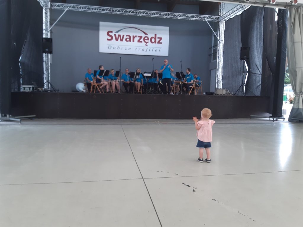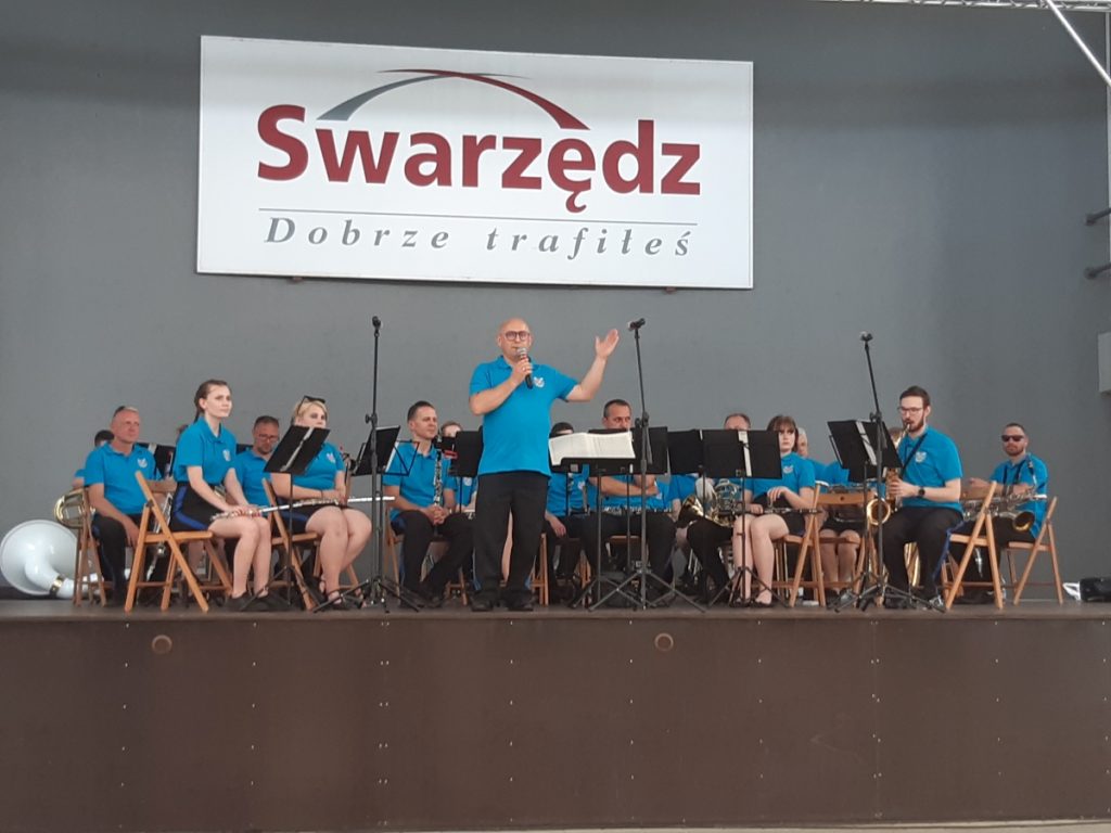 Na Scenie nad Jeziorem wystąpiła Swarzędzka Orkiestra Dęta. Oprócz doznań muzycznych oraz tanecznych, bardzo ważnym punktem programu było odsłonięcie tabliczki upamiętniającej Rajmunda Gronowskiego i symboliczne otwarcie alejki im. Rajmunda Gronowskiego. O nadaniu imienia ścieżce pisaliśmy kilka miesięcy temu (zobacz tutaj). Jako że Rajmund Gronowski był wieloletnim kapelmistrzem Swarzędzkiej Orkiestry Dętej, trudno wyobrazić sobie lepszy sposób na uroczyste otwarcie ścieżki, jak poprzez koncert. Więcej na temat Rajmunda Gronowskiego można znaleźć np. w uchwale i w załączonym do niej uzasadnieniu w odniesieniu do nadania imienia ścieżce. Treść uzasadnienia można też przeczytać na dole artykułu pod zdjęciami z koncertu.