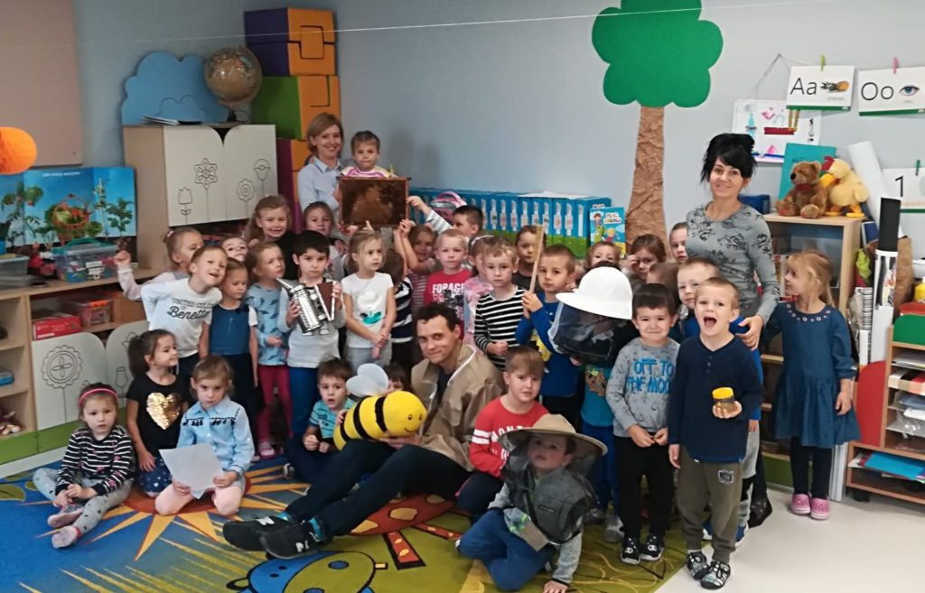 Wszystkie przedszkolaki, doskonale znają życie pszczół, ich zwyczaje, miejsce zamieszkania i szczególną rolą, jaką pełnią w przyrodzie i życiu człowieka oraz wiedzą jak mogą je chronić. Czują się ambasadorami pszczół, ponieważ to na ternie gminy Swarzędz znajduje się Muzeum Pszczelarstwa, które doskonale znają, a lokalny pszczelarz i jego miodne historie to stały punkt przedszkolnego programu.