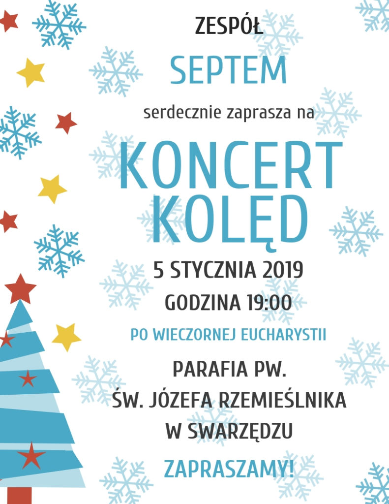 Aktualności 2 Zapraszamy Septem zaprasza na koncert kolęd 11 grudnia 201828 grudnia 2018 admin 0 Comments kolędy, koncert kolęd, SeptemZespół „Septem” zaprasza na koncert kolęd. Szczegóły na plakacie. Udostępnij: Kliknij, aby wysłać odnośnik e-mailem do znajomego (Otwiera się w nowym oknie) E-mail Kliknij by wydrukować (Otwiera się w nowym oknie) Drukuj