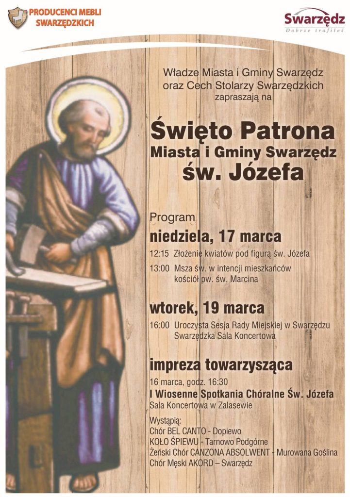Władze Miasta i Gminy Swarzędz oraz Cech Stolarzy Swarzędzkich mają zaszczyt zaprosić na uroczyste obchody Święta Patrona Miasta i Gminy Swarzędz św. Józefa