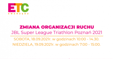 Czytaj dalejW najbliższy weekend w Swarzędzu odbędzie się „JBL Super League Triathlon Poznań 2021”, w związku z czym następuje zmiana organizacji