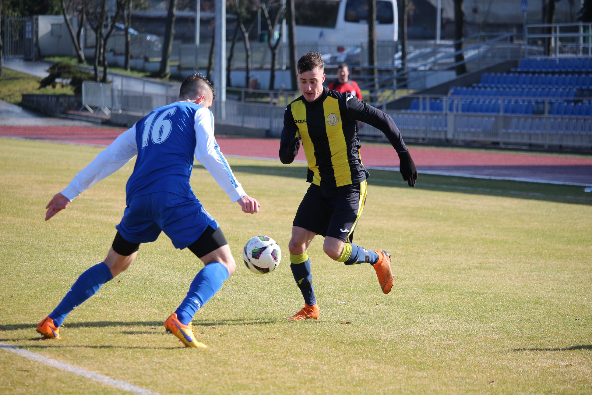 jak i samej gry lepsi byli futboliści LKS-u. Przed rozpoczęciem drugiej odsłony trener Kniat dokonał jednej zmiany. Chcąc wzmocnić atak zdjął z boiska Mikołaja Kistowskiego, którego miejsce zajął Krasimir Kapau. Unici nastawieni na odrobienie strat prezentowali odważny futbol. W 70. minucie pojawił się tego znaczący efekt. Wówczas do siatki trafił inny białoruski