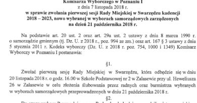 – wniosek Komisji Rewizyjnej Rady Miejskiej w Swarzędzu w sprawie udzielenia absolutorium Burmistrzowi Miasta i Gminy Swarzędz za rok 2018,