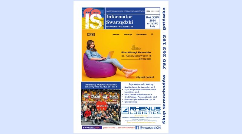 Ukazało się najnowsze wydanie Informatora Swarzędzkiego na luty – numer 2 (291)/2024. Nasz miesięcznik jest dostępny w punktach handlowych i usługowych na terenie gminy Swarzędz, a także w wybranych miejscach w gminach sąsiednich (Pobiedziska, Kostrzyn, Kleszczewo). Informator Swarzędzki wydajemy w formie papierowej oraz w wersji internetowej. Informator ukazuje się już od 24 lat i niezmiennie jest dostępny bezpłatnie. Zachęcamy do zapoznania się z aktualnym wydaniem Informatora Swarzędzkiego!
