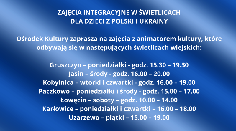 Poniżej informacja o świetlicach wiejskich, w których odbywają się zajęcia oraz dniach i godzinach zajęć.