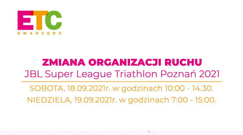 W najbliższy weekend w Swarzędzu odbędzie się „JBL Super League Triathlon Poznań 2021”, w związku z czym następuje zmiana organizacji ruchu na DK92 i dojazdu do ETC Swarzędz. Jak dojechać do ETC Swarzędz?